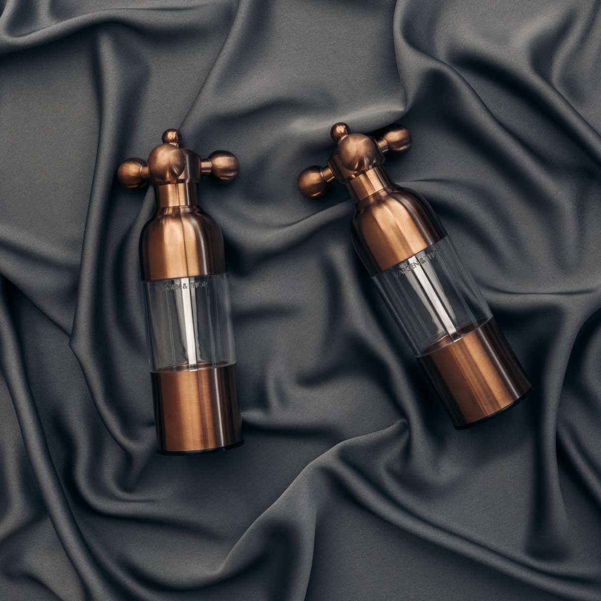 Vårt helt eget set med salt- & pepparkvarn. Det ikoniska originalet. Rena, mjuka former som för tankarna till marint med sin väl tilltagna vridningsenhet. En stilren design med finpolerad yta som går hem i alla kök. Ett givet val. Ett originallt yttrande.