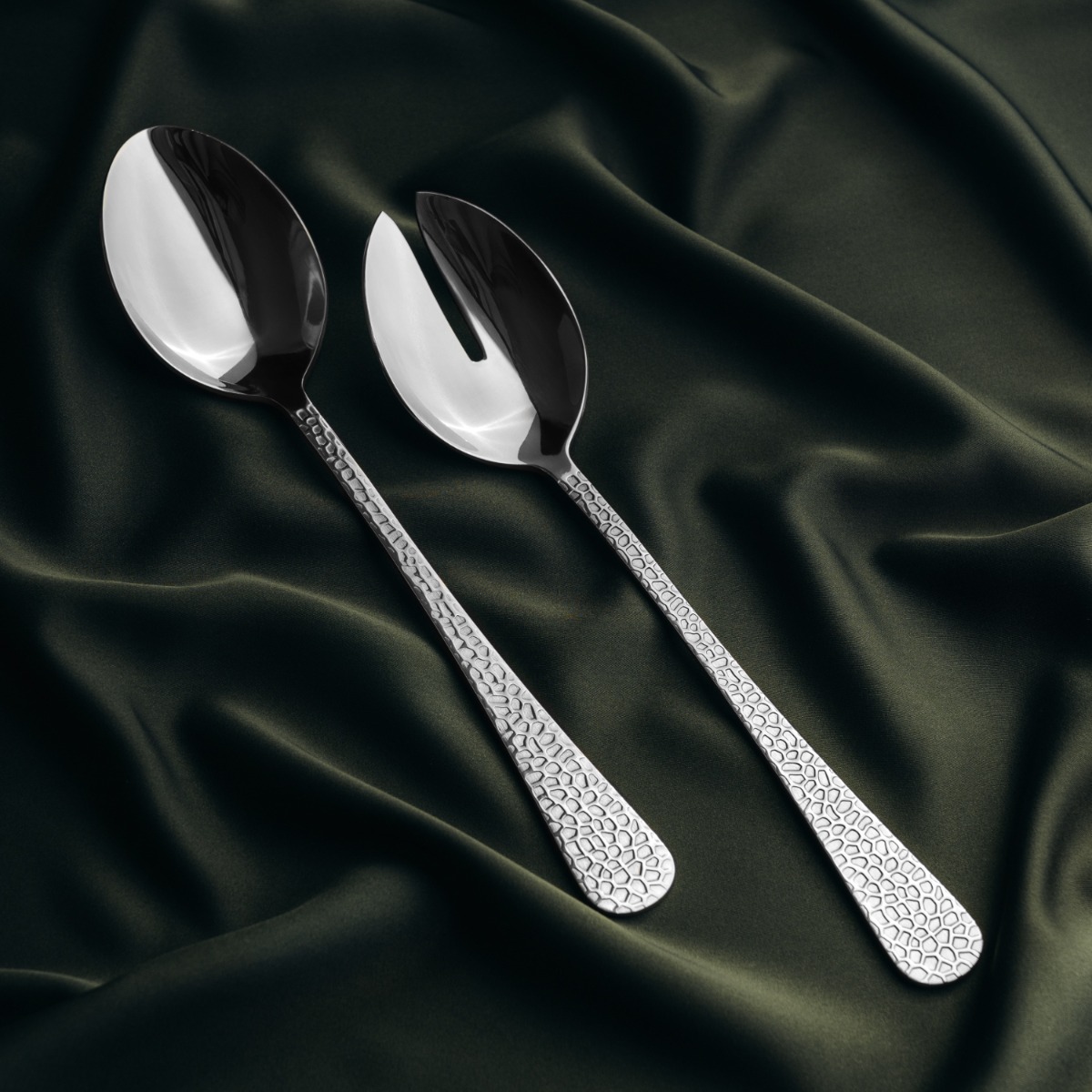 Salladsbestick i hamrat, rostfritt stål.