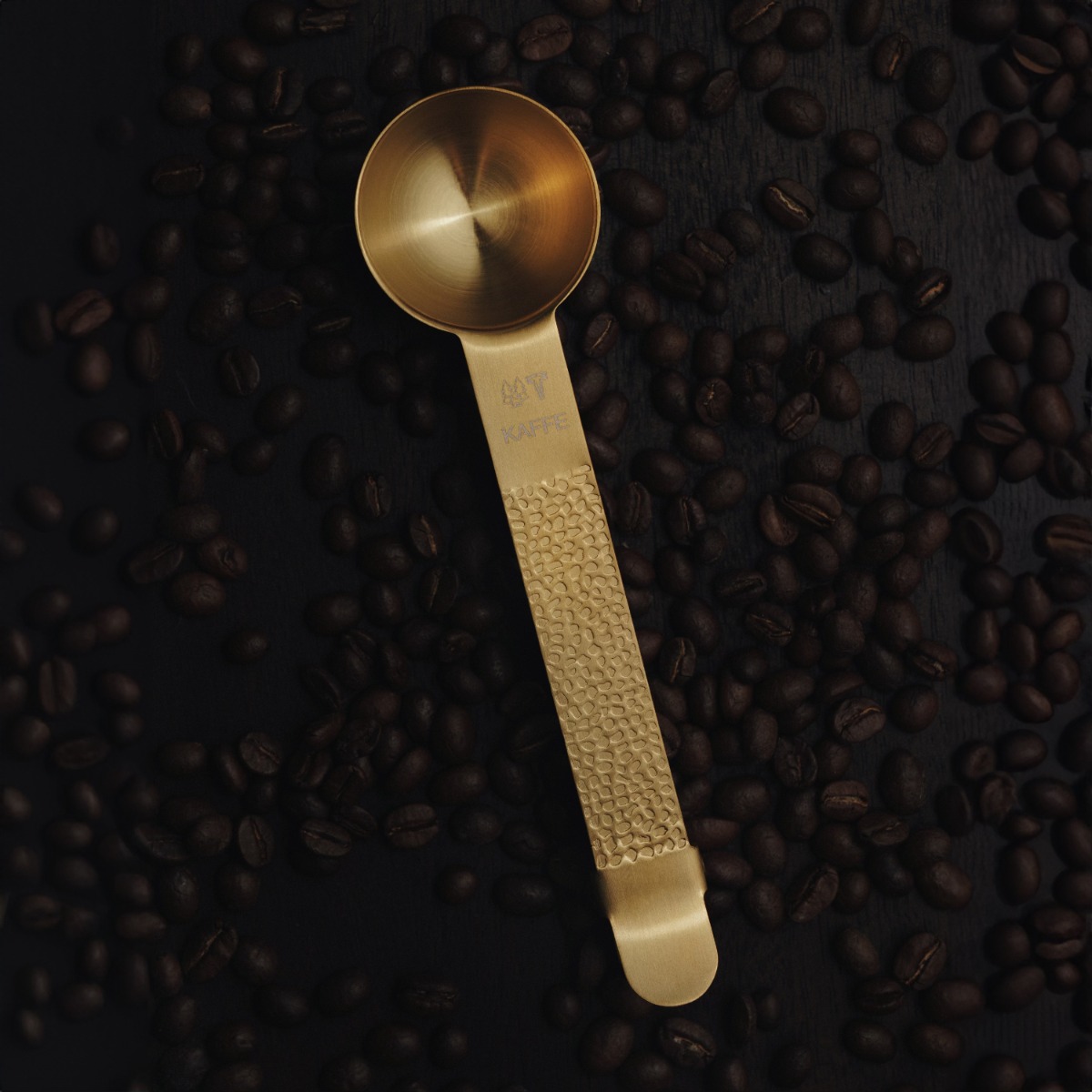 This is the coffee measure with a clip on the back so you can easily seal the bag of coffee again after you've finished scooping. A stylish accessory in the kitchen that elevates, the already magical, morning moment together with the first cup of coffee of the day. The coffee measure holds 20 ml and is equivalent to a cup of coffee. Made entirely of durable stainless steel and features our iconic hammered pattern on both the front and back. Heavy weight and unique design. Copper. Matching FENIX Series Delivered in a stylish box, perfect to give away to a friend. or to yourself. Dishwasher safe (