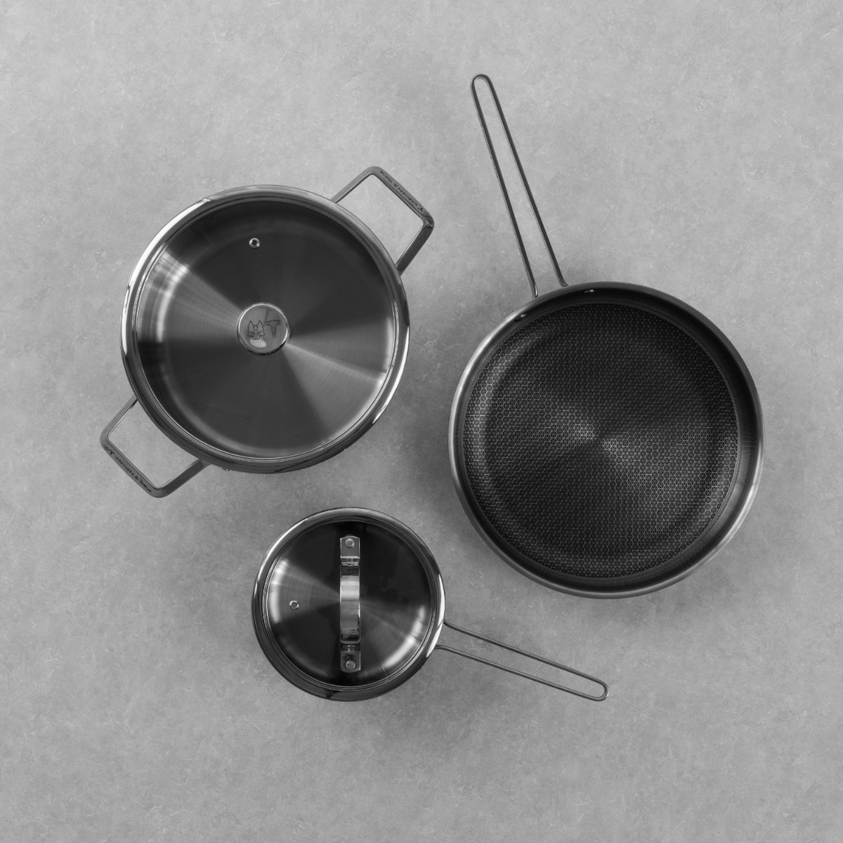 KROMA contains 1 L TEDDY pot, 4 PIXEL L pot and 28 cm Model MB frying pan. All in matching shimmering designs.