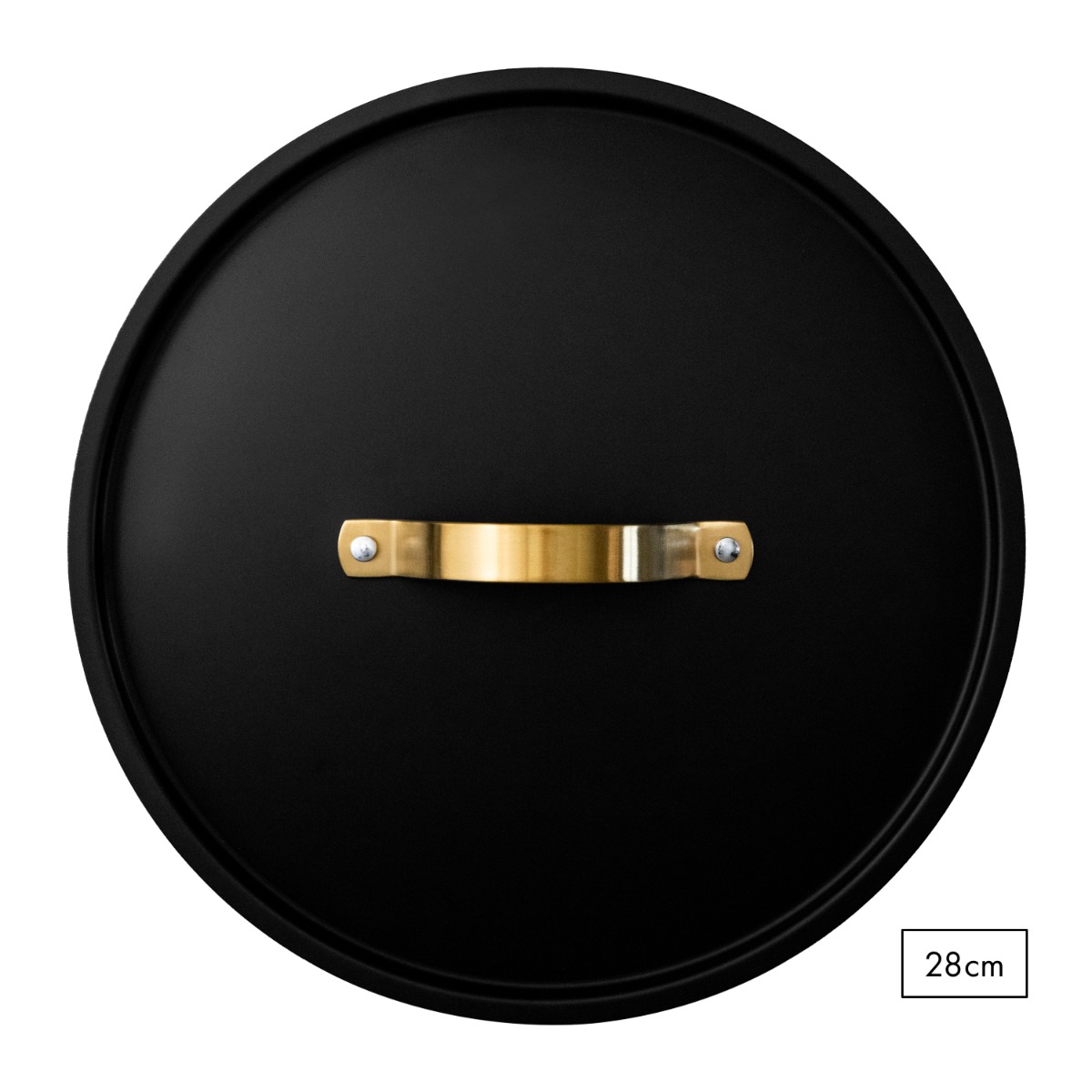 Universal allure. Universal lid for frying pans / sautés. Fits all 28cm containers and fits especially our own like a charm. Made entirely of steel throughout. Heat-safe handle with logo on it. Part of the ARVET series with our popular matte black finish together with brass details. Dishwasher safe.