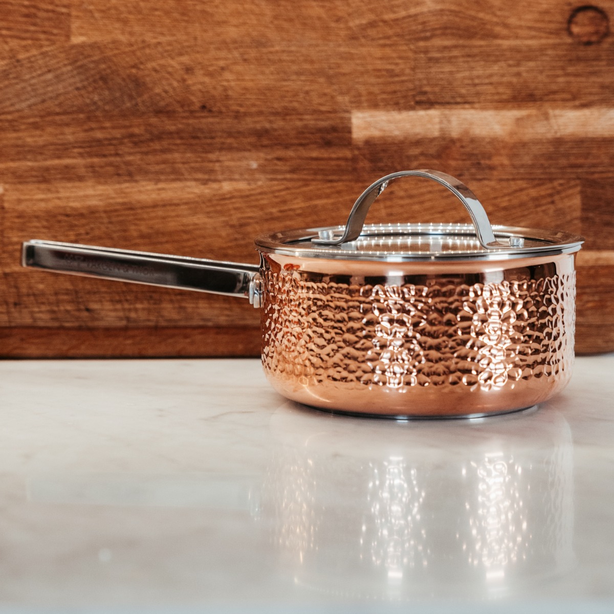 Built to last, designed to excel and amaze. We don't believe in coating in pots, VERA comes with an inside made entirely of brushed stainless steel. This, combined with aluminium as the middle layer and the outer in real copper, means that the heating speed and uniformity are optimal. A heat distribution in perfection. VERA - the details: 16cm diameter 1.6L volume Heat Safe Handles 2.5mm aluminum Dishwasher safe 304 stainless steel lid Handle in 201 stainless steel. Chromed. The care and time we have put in should be felt in every detail. Thanks to a new bottom cap, this copper vessel also works on induction. Of course, it works just as well on glass-ceramic, enamel and gas hobs. Dishwasher use is also excellent. Please note that when using a gas hob and/or dishwasher/detergent, the outer copper surface may become stained. To preserve the original shade, we recommend copper plaster.