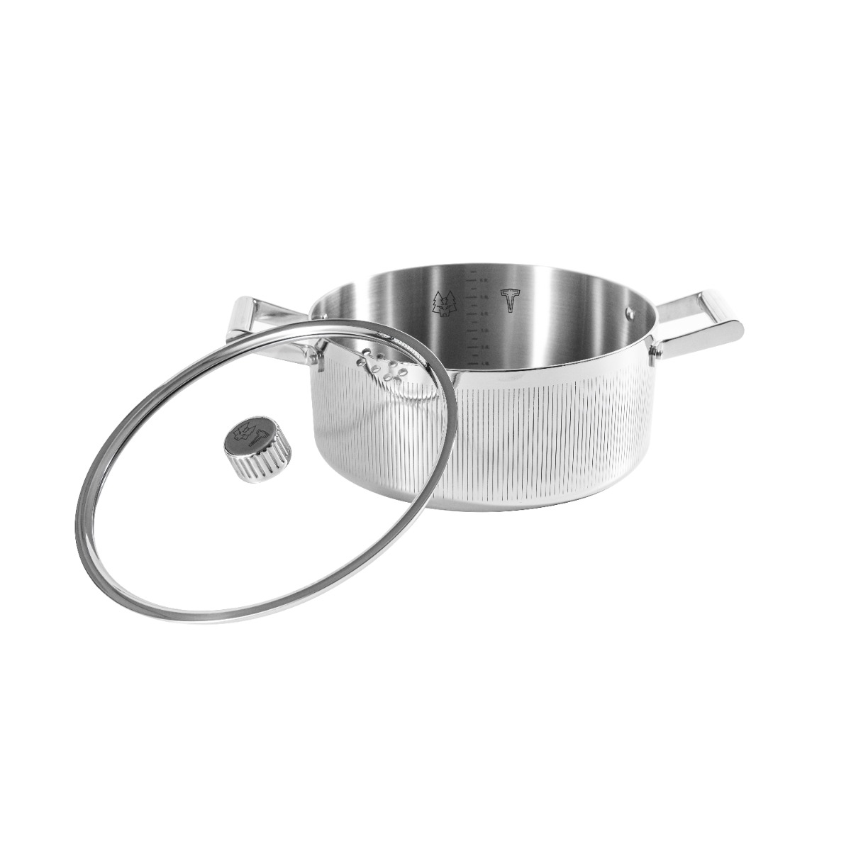 GLIMA 7 L är skapad för de tillfällen då matlagning inte längre bara handlar om en måltid, utan om tid tillsammans. Formen är generös men kontrollerad, och den räfflade ytan i spegelpolerat stål ger grytan ett lugnt, arkitektoniskt uttryck. Den reflekterar omgivningen diskret – inte för att ta plats, utan för att höra hemma där människor samlas.