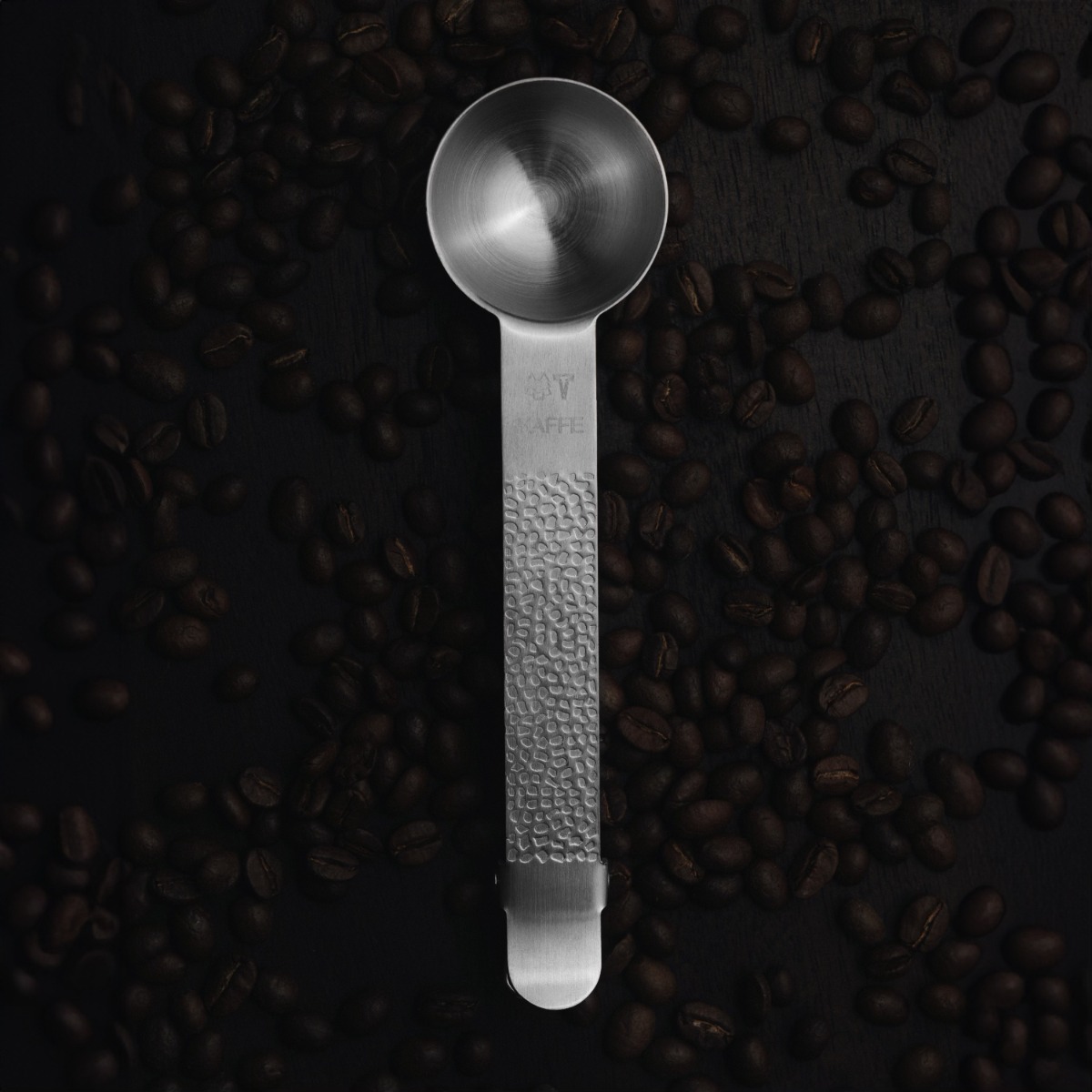Det här är kaffemåttet med klämma på baksidan så att du smidigt kan försluta påsen med kaffe igen efter att du skopat färdigt.