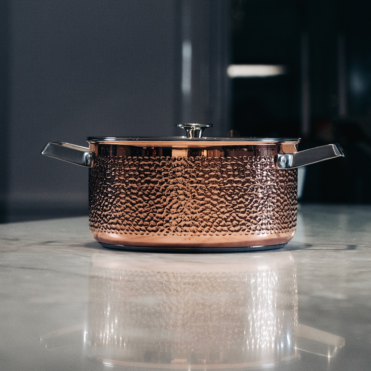 Känslan av äkta koppar som måste ses och testas på riktigt. Miranda är något speciellt. Tack vare ny bottenplatta fungerar detta kopparkärl även på induktion – trots äkta koppar. Den fungerar såklart lika bra på glaskeramik-, emalj- samt gashäll.