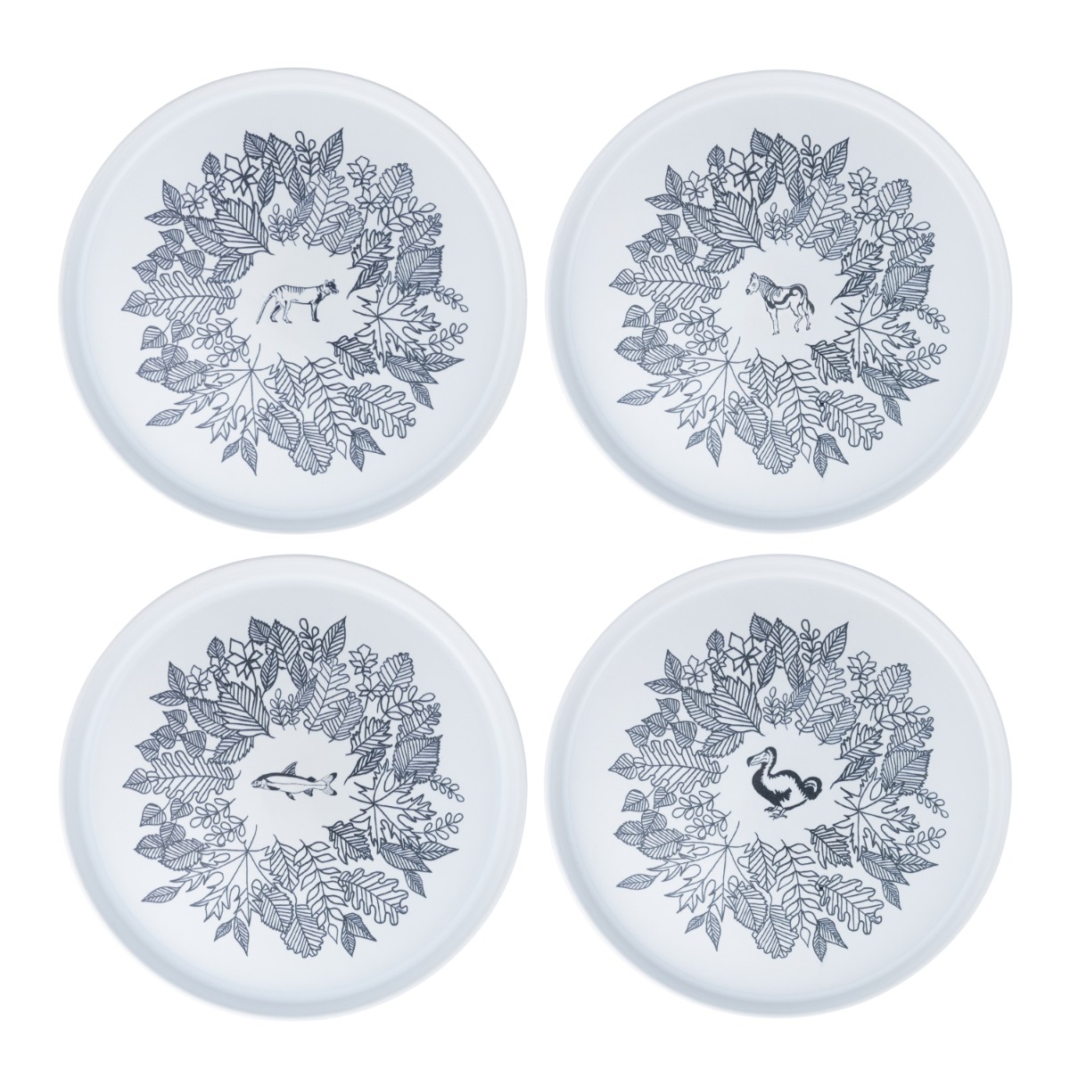 Tallriken är tillverkad i tålig stengods. Den hamrade ytan ger inte bara en visuell identitet, utan skapar också en känsla av kontroll. Tallriken kommer i vitt och är dekorerad med utdöda djur. Med de lätt upphöjda kanterna är den framtagen för att rymma allt från enkla vardagsrätter till mer avancerade uppläggningar. Resultatet är en tallrik som inte bara ser bra ut, utan också fungerar i praktiken – en tallrik designad för att hålla, både över tid och i användning. Tallrikarna levereras i set om 4.